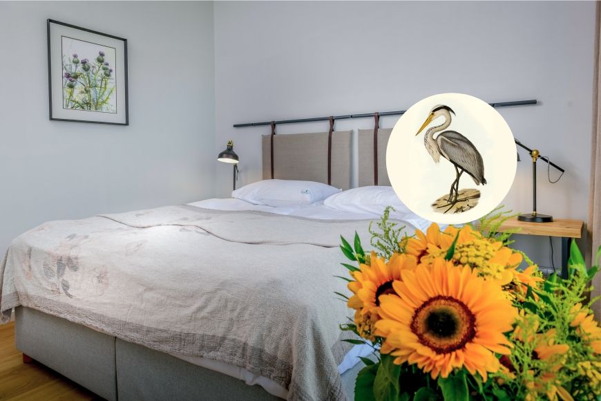 Sowa to przytulne, 1 pokojowe gniazdko dla dwóch osób o powierzchni 25 m2 z wyjściem na taras. W zależności od potrzeb posiada łóżko małżeńskie lub dwa oddzielne łóżka.